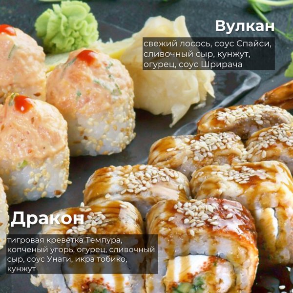 Существует множество разновидностей роллов, и ваши любимые мы собрали в наборе «Ямакаси» Кензо Кинг, Оригами и Филадельфия Лайт Ждем Вас по адресу: Воскресенская 59 Режим работы: 11:30 - 23:00