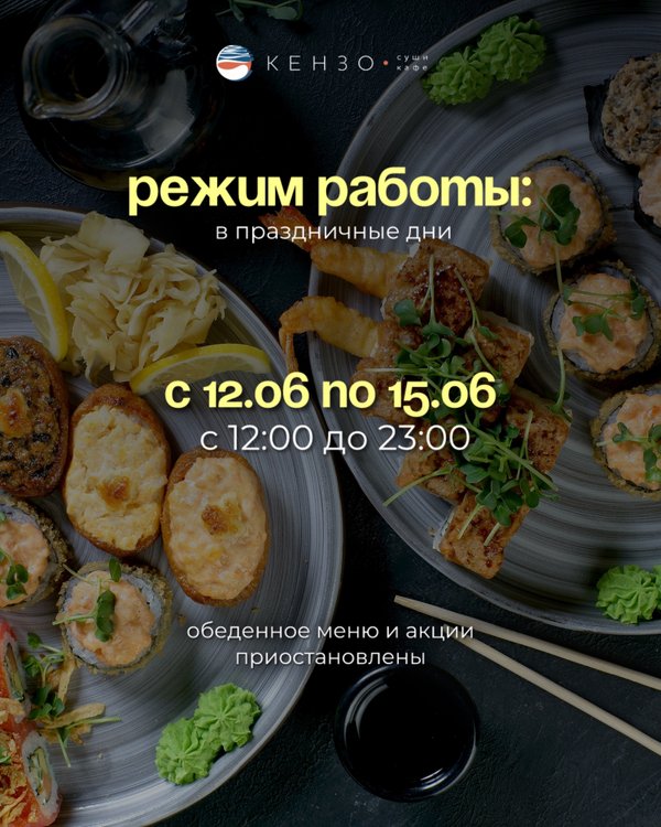 Дорогие гости, 10 июня мы закрыты по техническим причинам ️ С ув.администрация суши-кафе «Кензо»