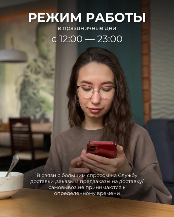 Дорогие гости, обращаем ваше внимание на режим работы суши-кафе и службы доставки в период выходных Воскресенская 59, 0 этаж