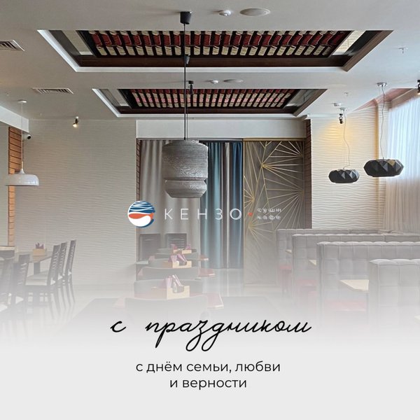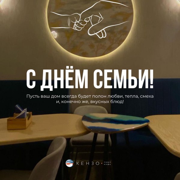 Дорогие гости! От всей души поздравляем вас с Днем семьи! Пусть ваш дом всегда будет полон любви, тепла, смеха и, конечно же, вкусных блюд! В суши-кафе «Кензо» мы знаем, что нет ничего важнее, чем проводить время с близкими, делясь радостью и вкусными моментами. Приходите к нам в гости всей семьей и насладитесь свежими, ароматными роллами, нежным сашими и вкуснейшими десертами Мы всегда рады видеть вас! Воскресенская 59, 0 этаж ️Бронь столов: ️Заказать доставку: