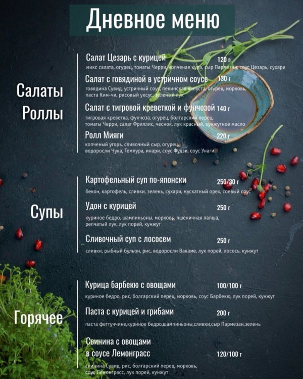 А вы уже видели? Совсем недавно мы обновили наше комплексное меню — сделали его ещё сытнее, разнообразнее и интереснее. Теперь каждый обед может стать по-настоящему особенным Больше вкусов, больше любимых блюд и ещё больше поводов заглянуть к нам в гости. Приходите попробовать новинки и делитесь впечатлениями