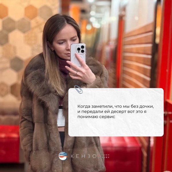 Для нас нет ничего важнее тёплой атмосферы в зале. Спасибо за ваше доверие и присутствие рядом ️ С любовью, ваше суши-кафе КЕНЗО