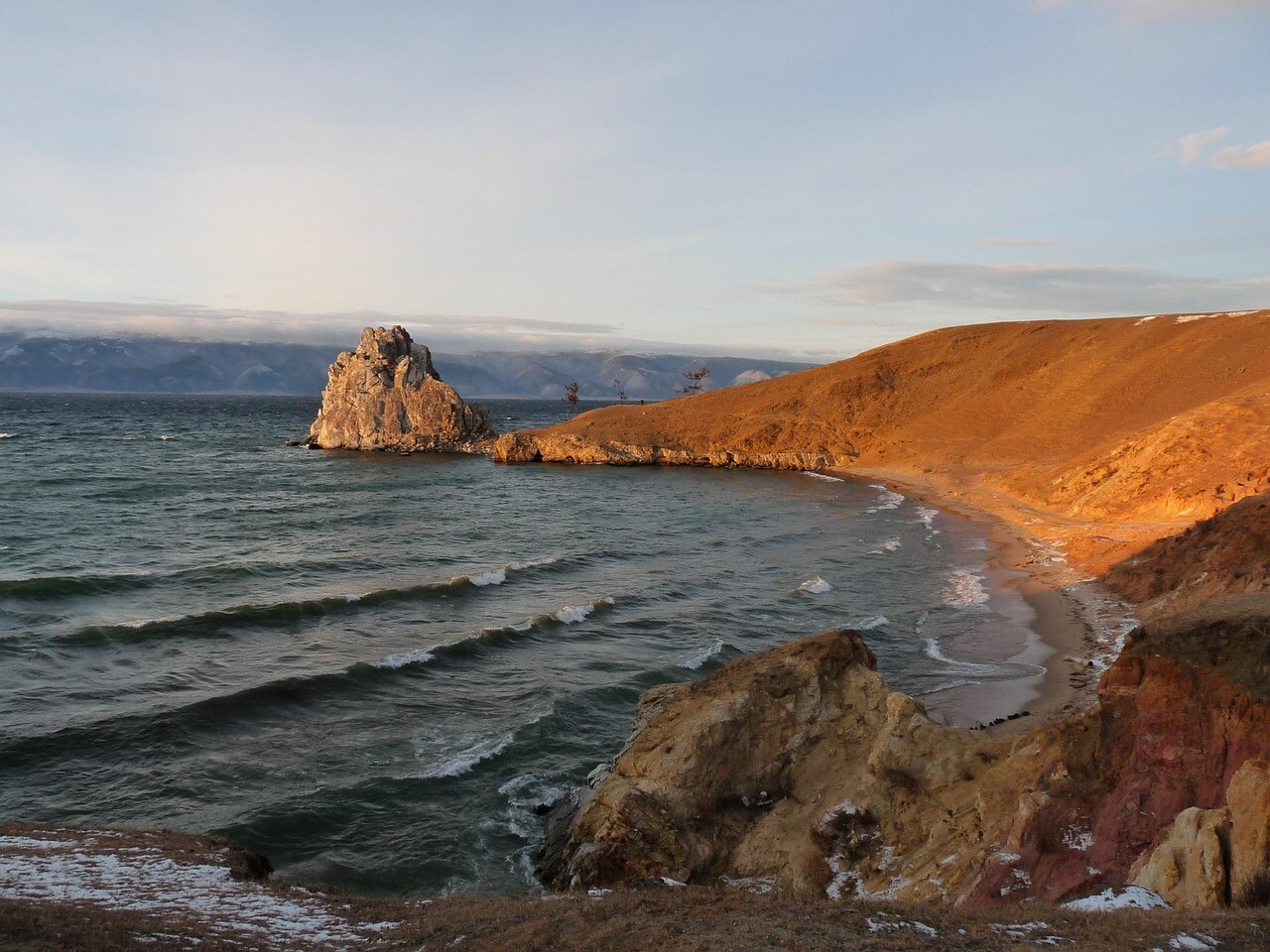 побывать на Ольхоне — самом большом и таинственном острове озера, где, по преданиям, живут духи Байкала;