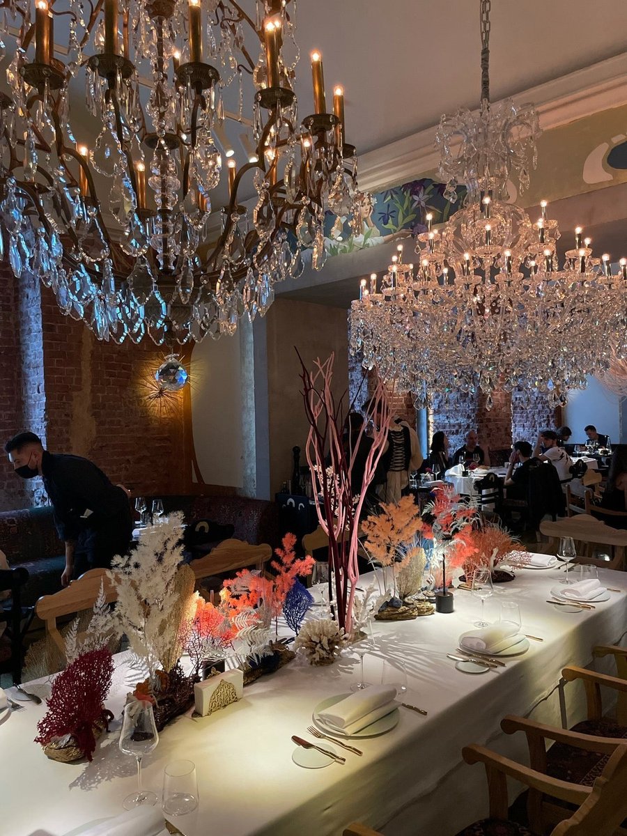 Большинство блюд повара ресторана готовят с использованием микрозелени, которую выращивают здесь же — в мини-теплицах, расположенных под потолком.