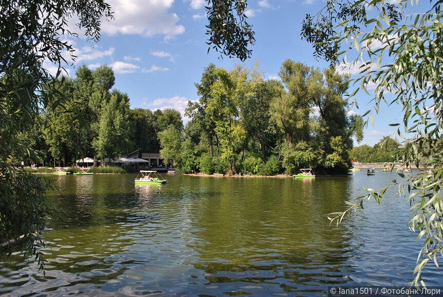 Берег, покрытый настилом, лебеди и утки, плавающие по водной глади, вечерняя подсветка, удобные скамейки и столики – здесь атмосферно в любое время суток. Многие фрилансеры с удовольствием приходят сюда поработать. Парковый Wi-Fi на берегу ловит прекрасно. Для любителей водных развлечений в аренду сдаются катамараны и лодки.