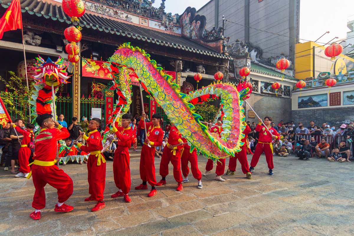 В канун праздника "гоняют" красочных драконов, вывешивают традиционные фонарики, везде сияют фейерверки и взрываются петарды — они отгоняют злых духов и невезение. А желающим поймать удачу в этот день нельзя принимать душ, мести пол и выносить мусор, чтобы случайно не смыть её и не вымести из дома.