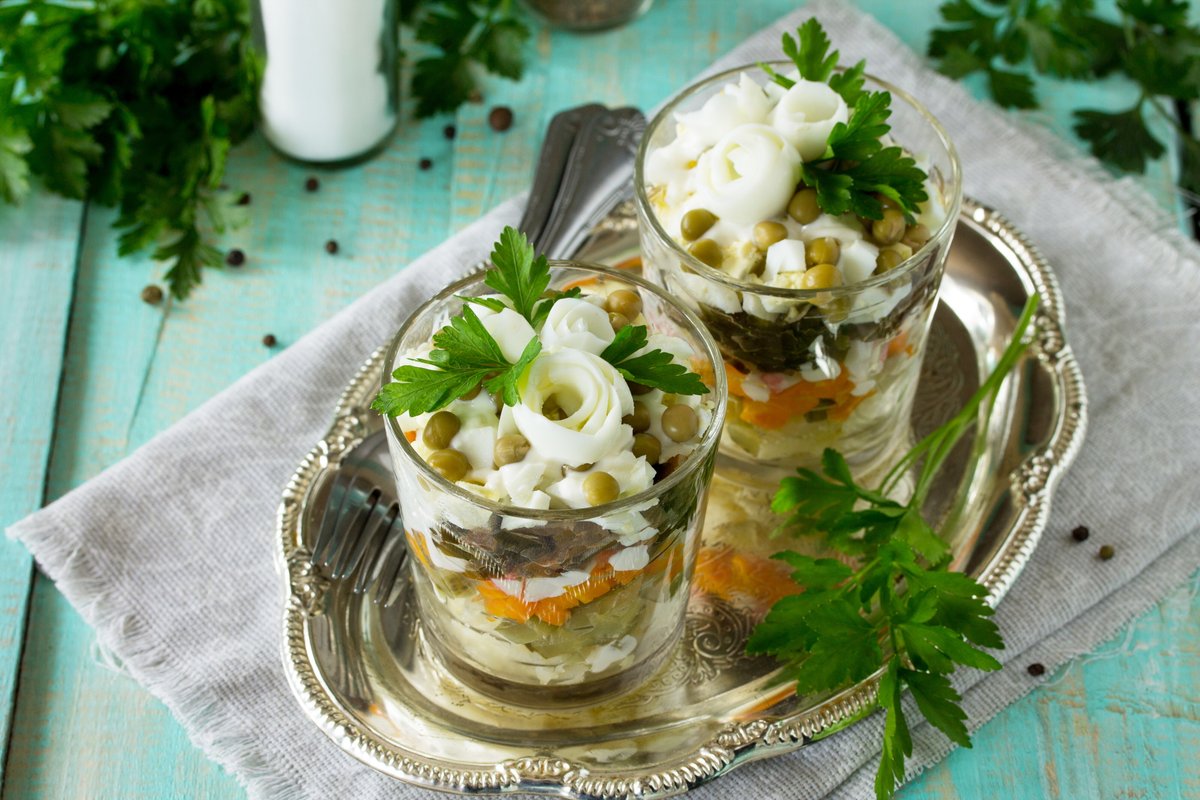 Блюдо, созданное шеф-поваром Люсьеном Оливье в 1860 году, в московском ресторане "Эрмитаж", сразу завоевало сердца знатных особ. Богатство вкуса раковых шеек, оливкового масла с горчицей, перепелиных яиц и солёных огурчиков не оставляло равнодушным никого! Но сложный рецепт постепенно упрощался: варёная колбаса, морковь, зелёный горошек и картофель сделали кушанье доступным для простых людей.