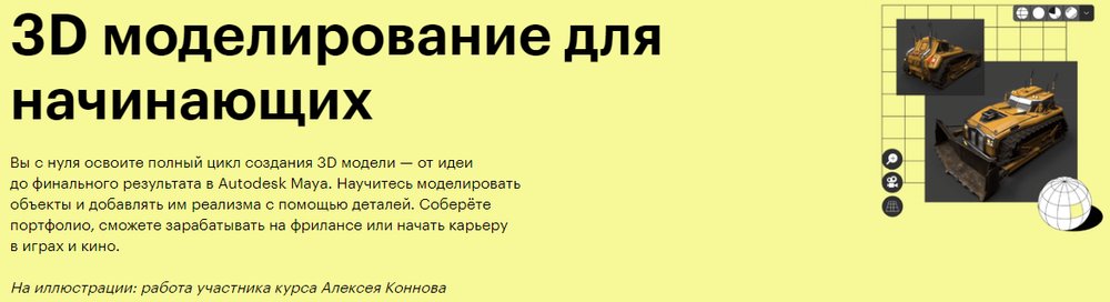 Онлайн-университет GeekBrains готовит специалистов-универсалов по трехмерному моделированию с нуля. Программа построена по принципу от простого к сложному и позволяет не только изучить базу, но и овладеть продвинутыми навыками создания трехмерной графики. Большой блок посвящен архитектурному проектированию и промышленному дизайну. Занятия проходят на платформе GeekBrains, читают лекции и проводят семинары профессионалы, стоявшие у истоков индустрии, — Денис Пожидаев, Арсений Измайлов, Амвросий Иващенко. Пропустившим прямые эфиры все материалы доступны в записи. В процессе обучения студентам помогают наставники, комьюнити-менеджеры и служба поддержки. В подарок слушатели получают курс по изучению нейросетей с подробными гайдами и инструкциями.