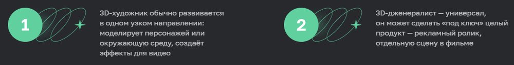 В разработке своих курсов «Нетология» сделала акцент на изучении практических инструментов. На занятиях студенты осваивают целых семь программ для дизайна и трехмерного моделирования и после выпуска становятся 3D-дженералистами, то есть специалистами-универсалами, которые способны самостоятельно сделать весь продукт — к примеру, рекламный ролик или объемные эффекты к сцене в кино. Приемы работы с программами слушателям объясняют наставники, которые делятся собственными наработками и лайфхаками.