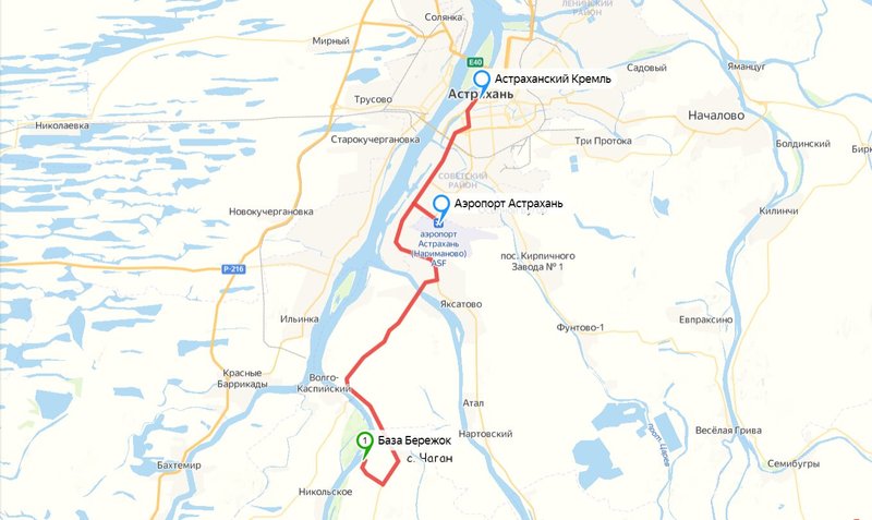 Расстояние от центра «Астрахани» (площади Ленина) до Базы — 30 км;