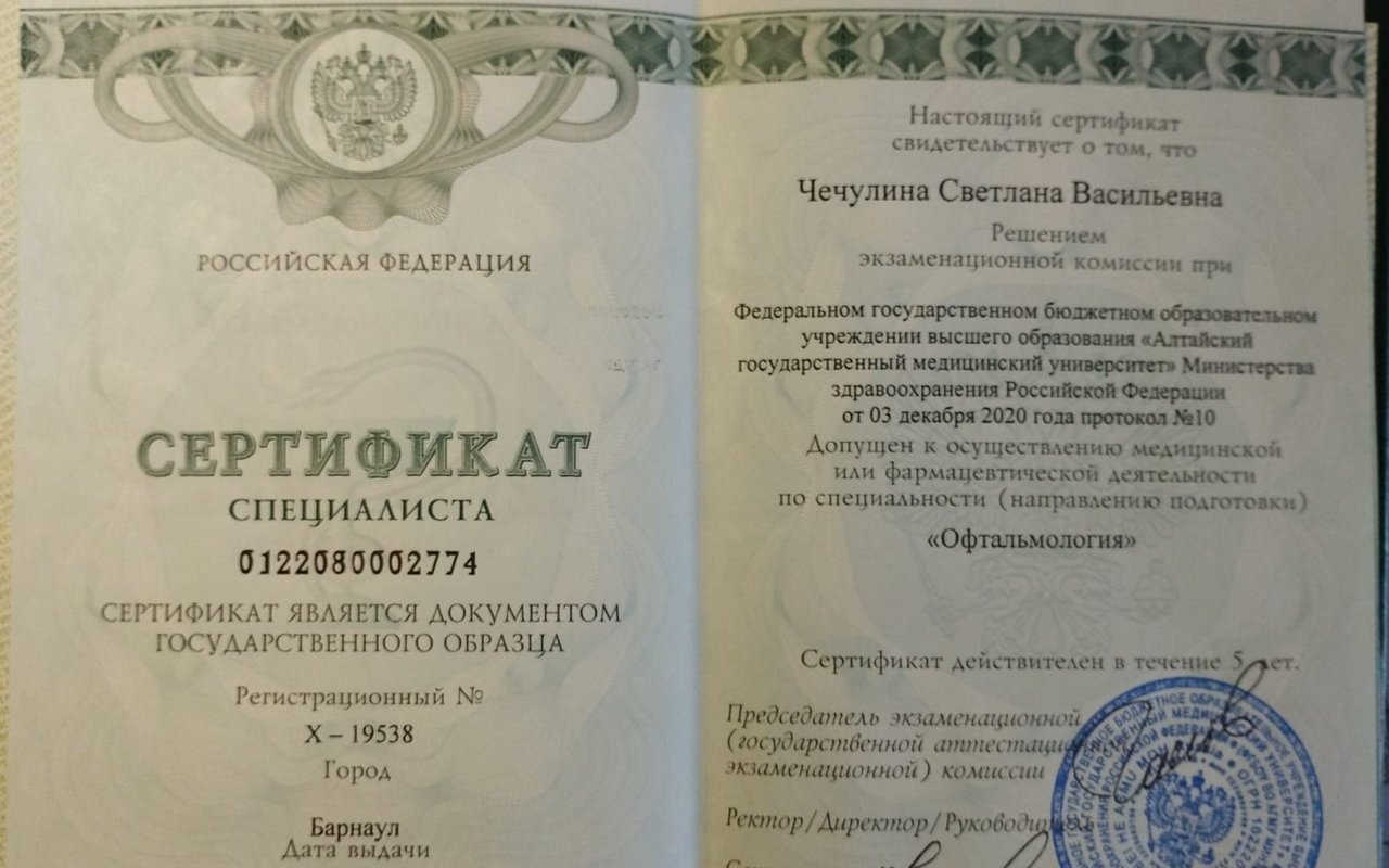 Алтайский Государственный медицинский университет по специальности офтальмология, организация здравоохранения и общественное здоровье