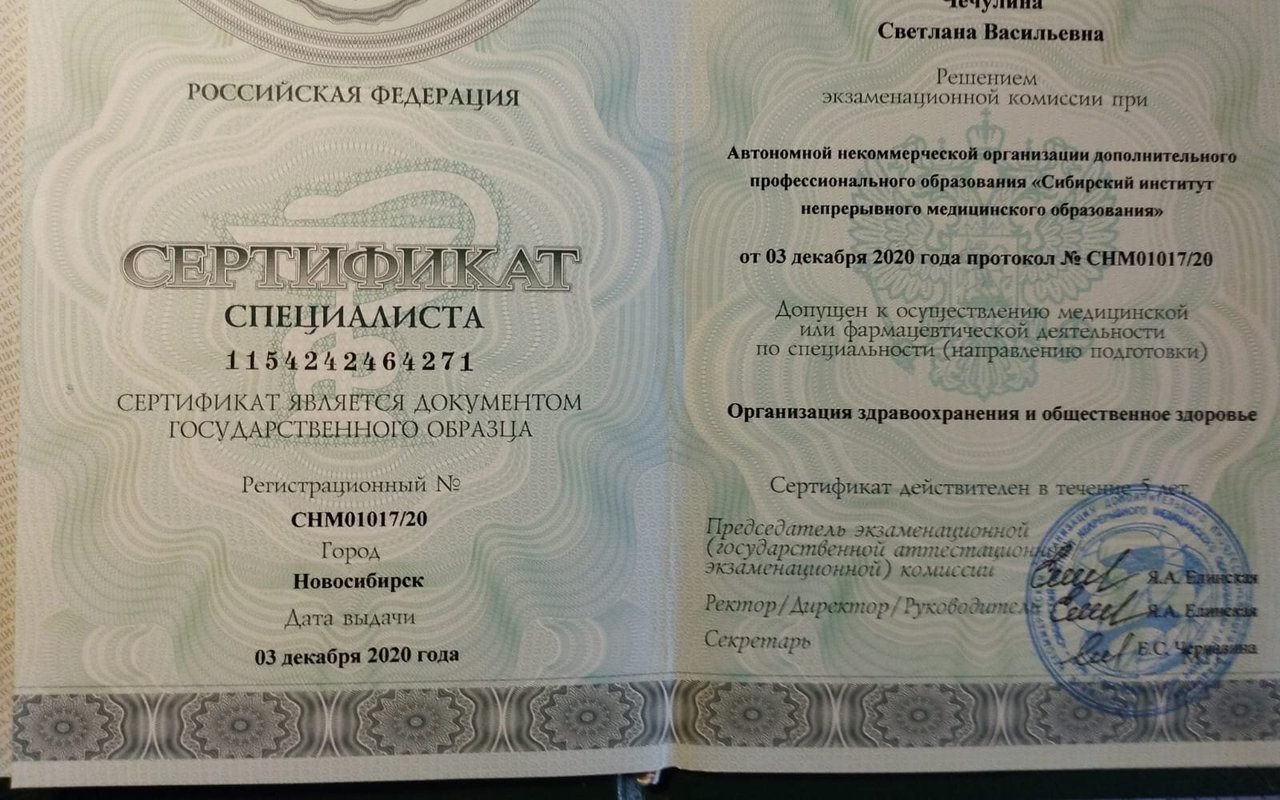 Автономная некоммерческая организация дополнительного профессионального образования «Сибирский институт непрерывного медицинского образования» по специальности организация здравоохранения и общественное здоровье