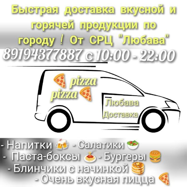 Дорогие наши Гости! СРЦ Любава рад сообщить что у нас работает доставка! ТЕЛЕФОН:, так же вы можете заказать нашу пиццу в яндекс еде и деливери, приятного аппетита! «Если хочешь с пылу с жара, то тогда тебе в Любаву!» — яндекс еда, -диливери