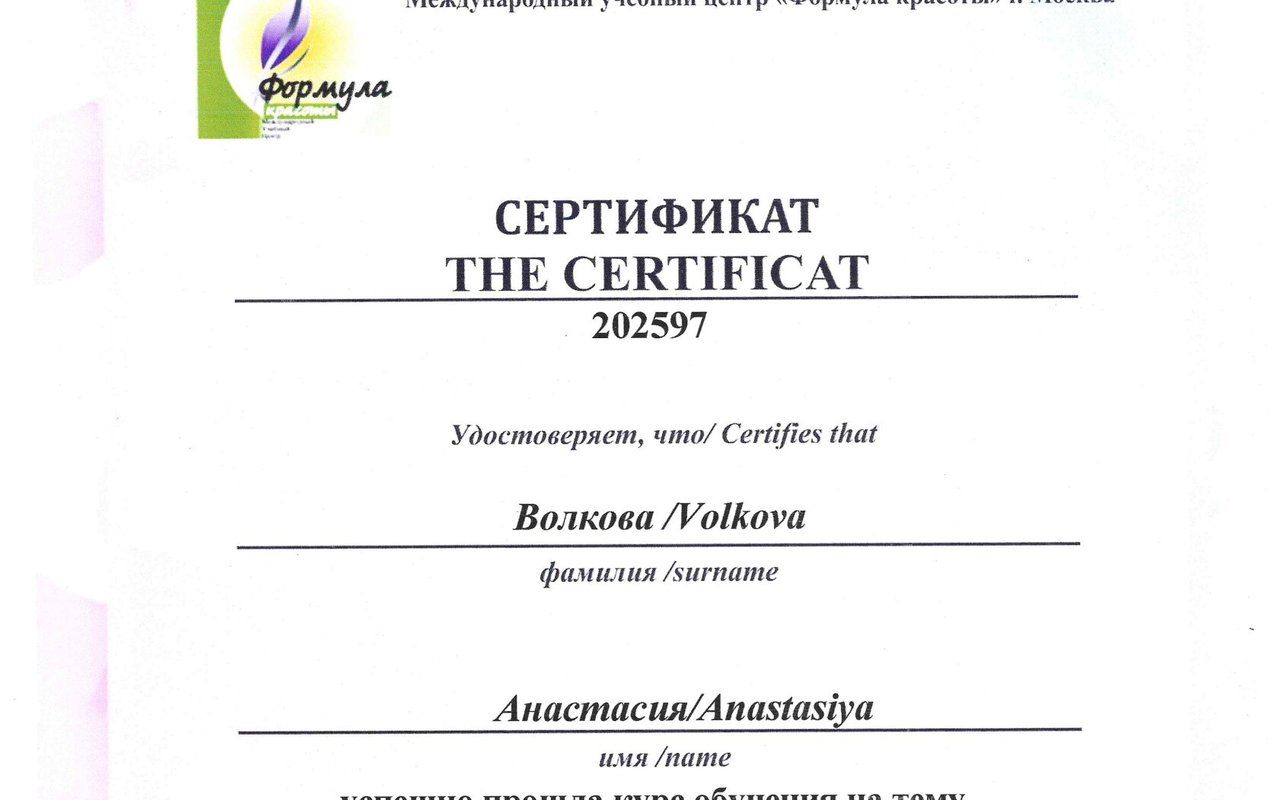 Отзывы о специалисте по красоте Анастасии Волковой