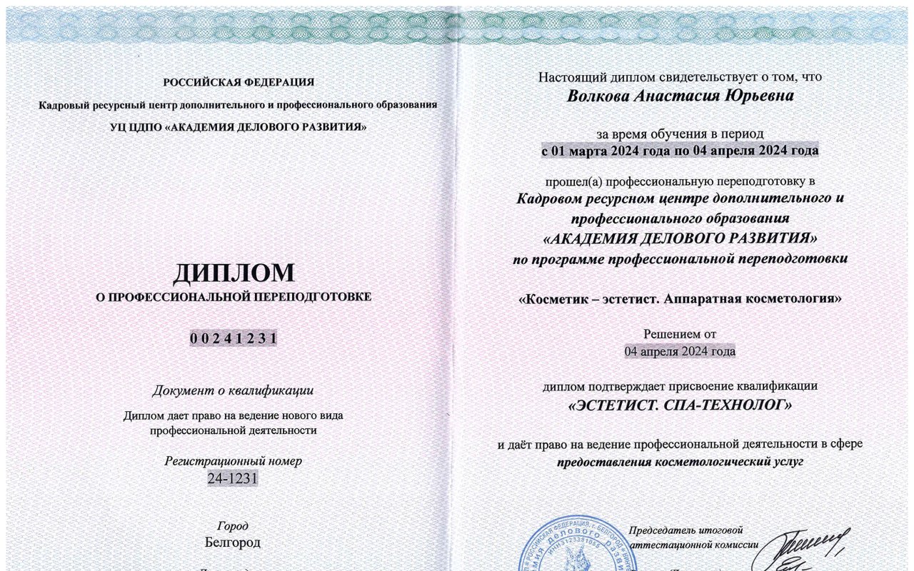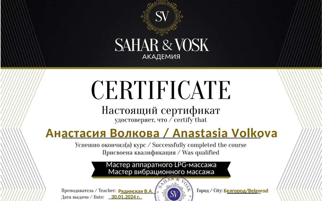 Места работы специалиста по красоте Анастасии Волковой