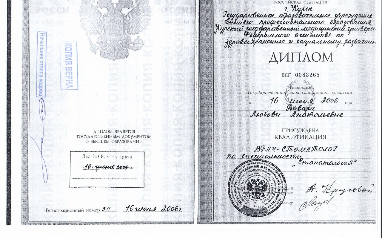 2010 — Воронежский Государственный Медицинский Университет им. Н.Н. Бурденко (стоматология детская)
