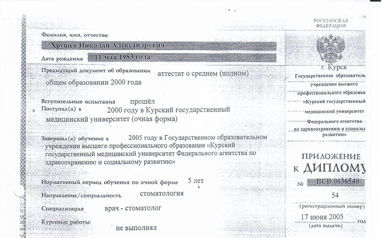 Хрущев Николай Александрович является стоматологом-ортопедом, а также работает в сфере стоматологической хирургии и имплантологии. Николай Хрущев в том числе занимается лечением пародонтита, делает пластику тканей полости рта, уздечки губ и языка и десны, а также обладает знаниями и навыками в области гнатологии. Вы можете записаться к Николаю Хрущеву, если вам требуется восстановить утраченный зуб или если один из зубов разрушен до такой степени, что обычная пломба ему не поможет. Протезирование предполагает профессиональную санацию зубов, так что перед обращением к ортопеду стоит посетить стоматолога-терапевта.... Показать еще