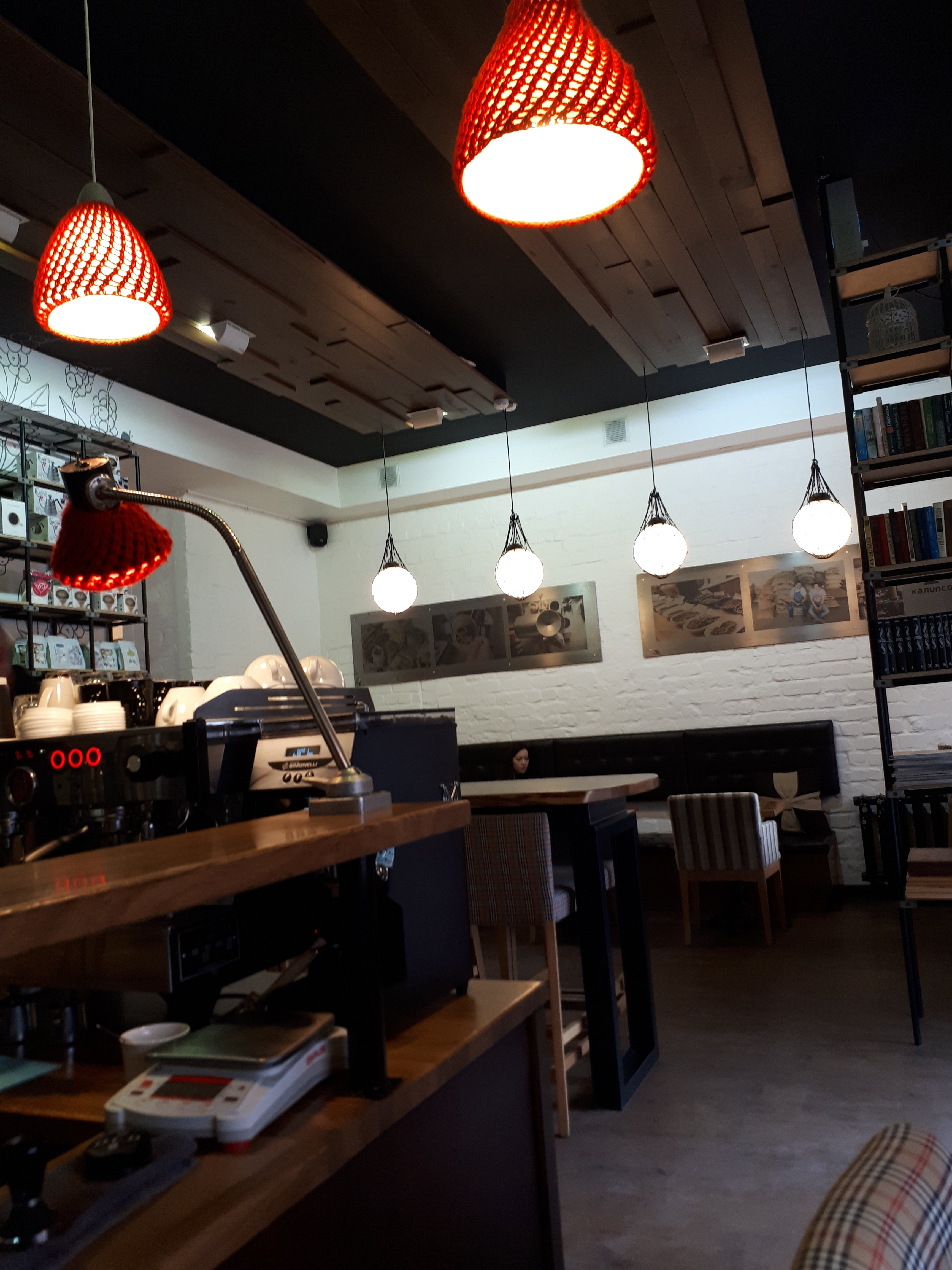 Зашли 3 июня выпить кофе и заказать столик на 6 июня. Кофе понравился.Придя 6 июня к назначенному часу, увидели, что заказанный столик занят. Пришлось сесть у выхода на свободные места. Кухня не понравилась: салат с фунчозой ничем не заправлен…