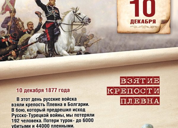 10 декабря — памятная дата военной истории России. В этот день в 1877 году русские войска взяли крепость Плевна в Болгарии, что стало одним из ключевых событий Русско-турецкой войны 1877–1878 годов.