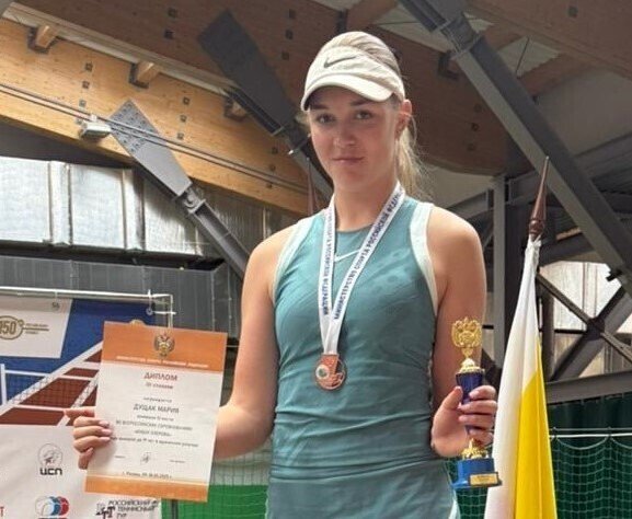 Мария Дущак — бронзовый призер Всероссийских соревнований! 16 мая 2025 года в г. Рязани завершились Всероссийские соревнования по теннису «КУБОК ОЗЕРОВА» среди юниоров и юниорок до 19 лет. Категория турнира IА. Воспитанница ГАУ ДО БО СШ «Горизонт» заняла 3 место в одиночном разряде. Поздравляем Марию и её тренера Паклина Д.В. Желаем дальнейших спортивных успехов и достижений!