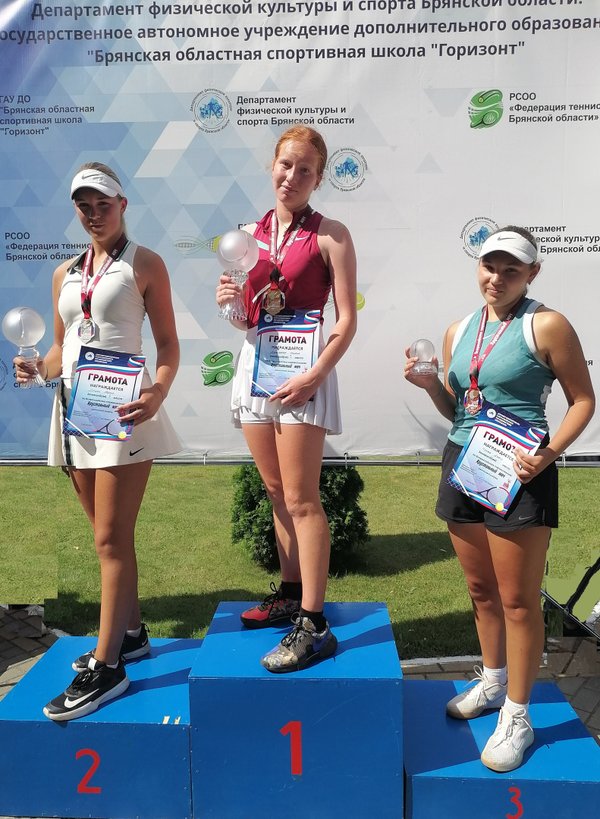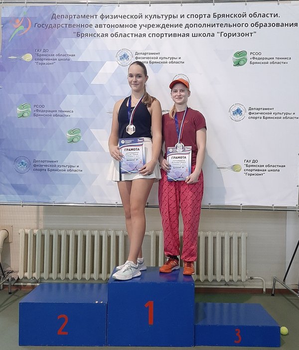 астера спорта по теннису Мария Дущак (тренер-преподаватель Васейкин Сергей Георгиевич) стала обладательницей серебряной медали в одиночном разряде, уступив в финальном матче представительнице города Рязани Дзоблаевой Ариане. А в паре со своей соперницей по одиночной игре, Дзоблаевой Арианой, Мария стала победителем соревнований, обыграв пару из Санкт-Петербурга в составе Опариной Марии и Шляпниковой Полины. Еще одна представительница брянской спортивной школы «Горизонт» кандидат в мастера спорта по теннису Алена Федотова (воспитанница тренера-преподавателя Юргенса Алексея Дмитриевича) в паре с Екатериной Орловской из г. Воронежа заняла 3 место, в напряженной борьбе обыграв пару в составе Годлевской Евгении (г. Портвино) и Павловой Вероники (г. Москва). Поздравляем спортсменов и тренеров-преподавателей ГАУ ДО БО СШ «Горизонт» с достигнутыми результатами! Желаем дальнейших успехов и новых спортивных достижений!!!