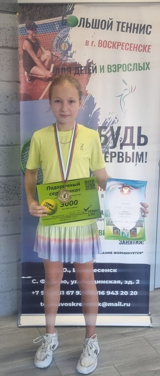 24 августа 2025 г. в г. Одинцово завершилось первенство Одинцовского городского округа Московской области «Гранд Теннис» среди спортсменов до 13 лет. Воспитанница ГАУ ДО БО СШ «Горизонт» Коваль Любовь (тренер-преподаватель Панаскин Олег Константинович) стала обладательницей бронзовой медали. Соперницей спортсменки в матче за 3 место стала Ивко Ева, представительница города Москвы. ПОЗДРАВЛЯЕМ Любовь и её тренера-преподавателя с успехом и желаем дальнейших побед и спортивных достижений!!!
