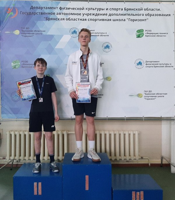 ПОЗДРАВЛЯЕМ ПОБЕДИТЕЛЕЙ! 24 мая 2025 г.завершилось Первенство Курской области по теннису до 17 лет. Воспитанники ГАУ ДО БО СШ «Горизонт» заняли призовые места. Одиночный разряд : 2 место — Ермакова Вероника, тр. Юргенс А.Д.; 2 место — Васейкин Сергей, тр. Васейкин С.Г.; Смешанный парный разряд : 1 место — Ермакова Вероника в паре с Василевской Стефанией из Курска; 1 место — Васейкин Сергей в паре с Журавлевым Арсением из Курска: Желаем дальнейших спортивных достижений!