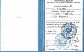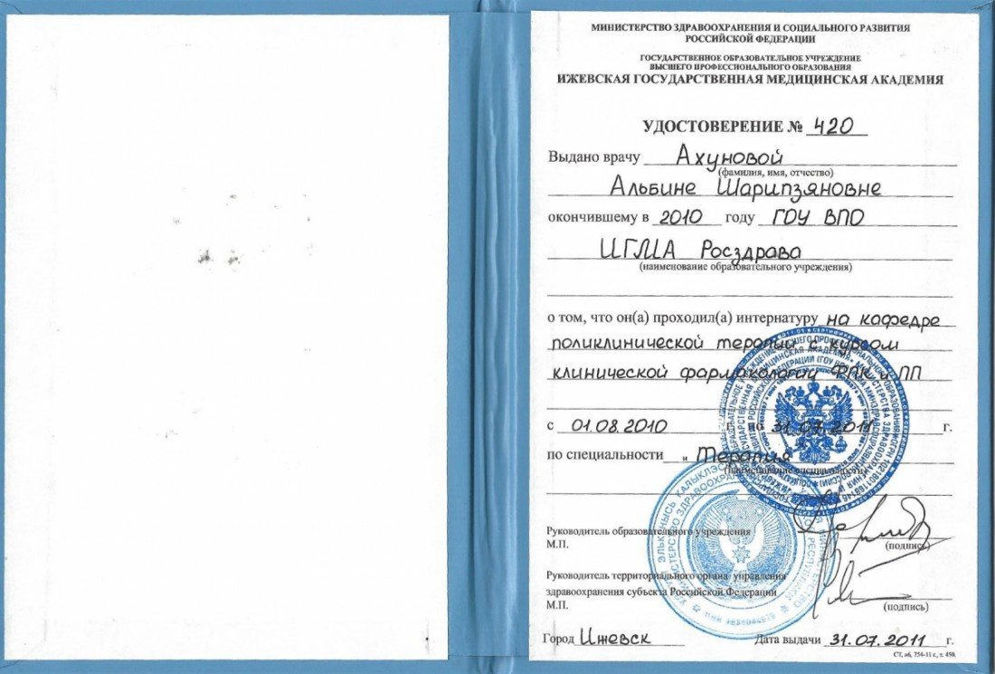 2011 — Ижевская государственная медицинская академия (фармакологии, терапия)