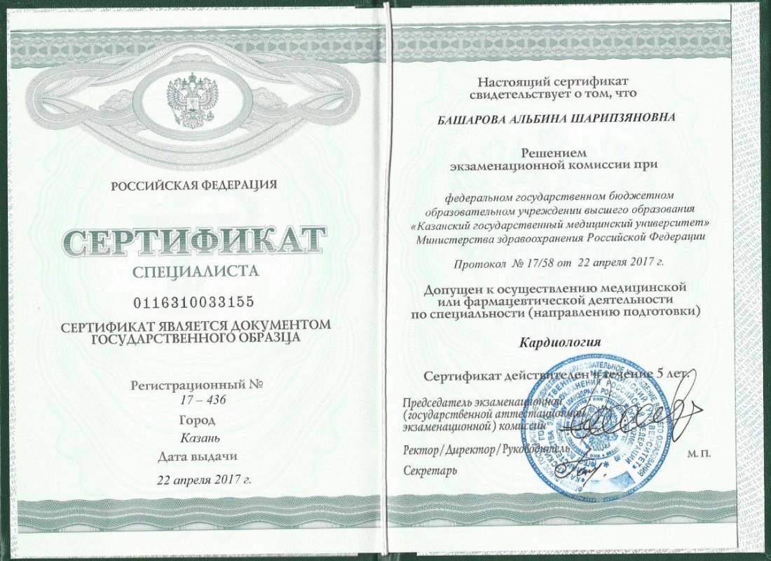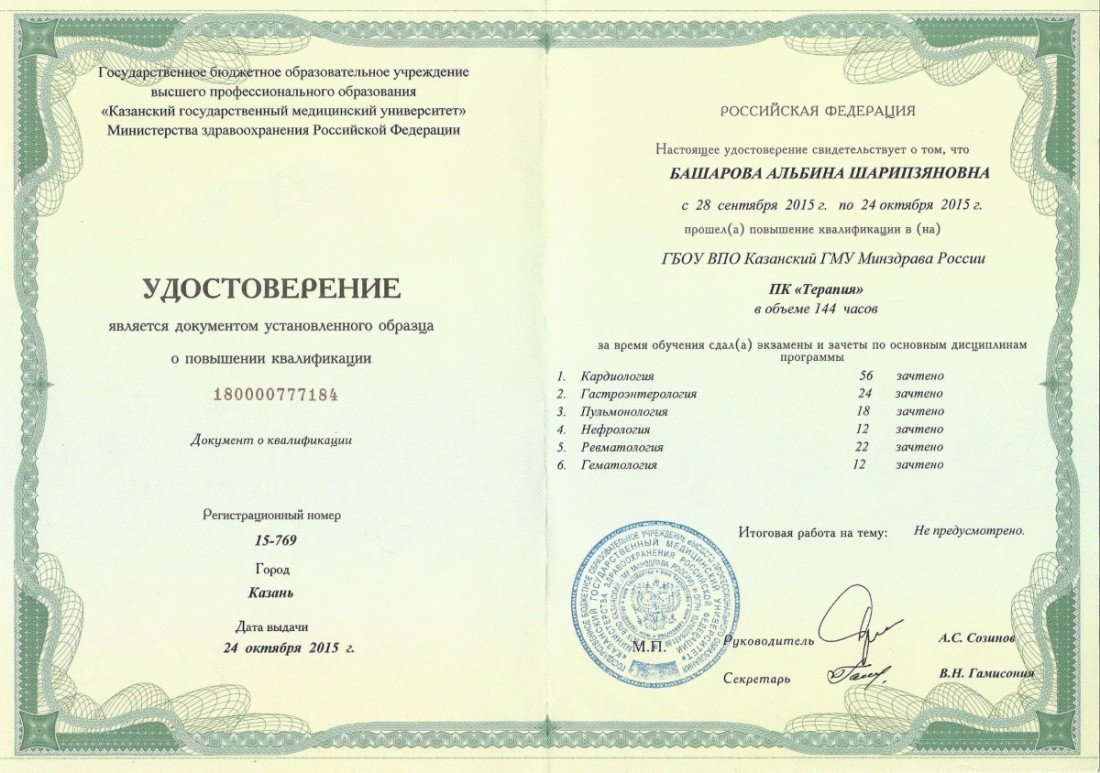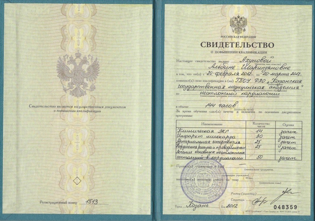 2012 — Казанский государственный медицинский университет (кардиология)