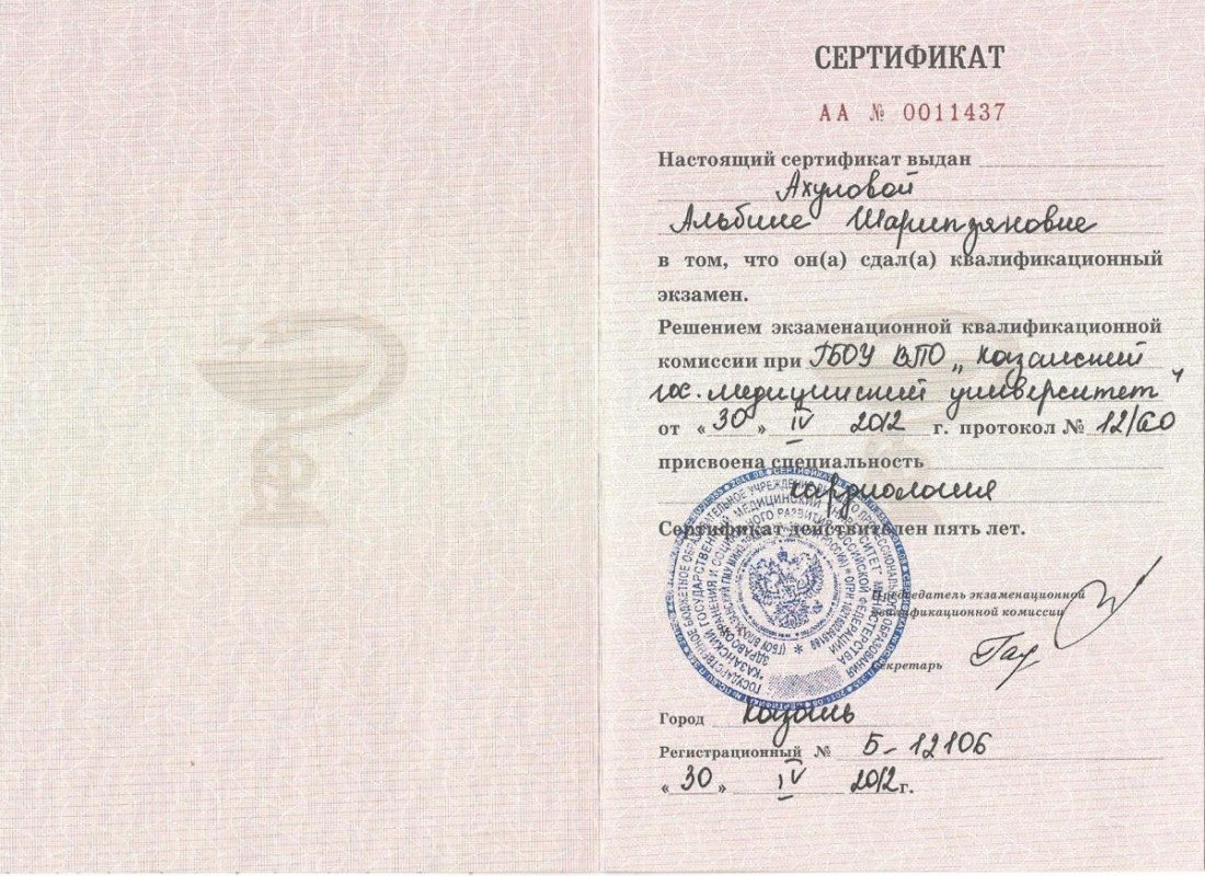 2011–2012 — Терапевт. ЦРБ города Нижнекамска
