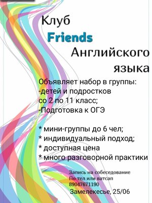 8 занятий по 50-60 мин (в зависимости от возраста)