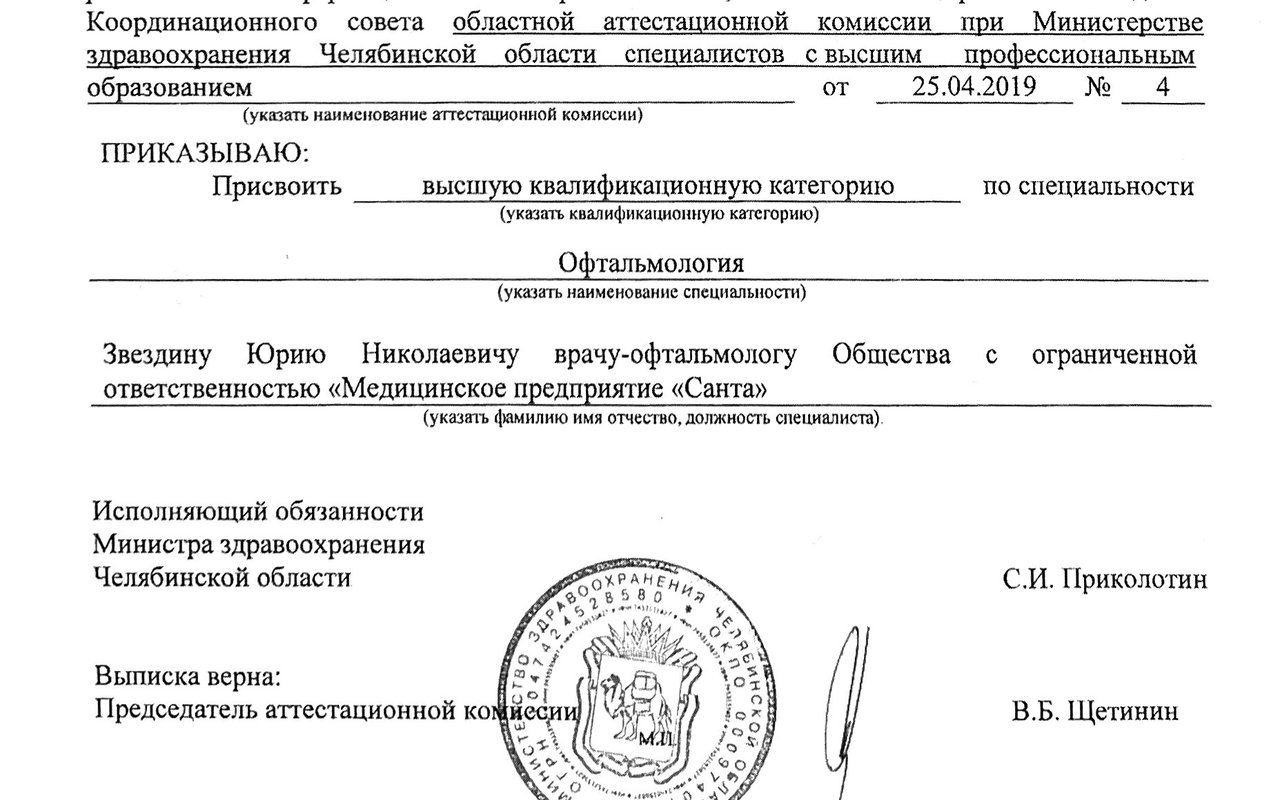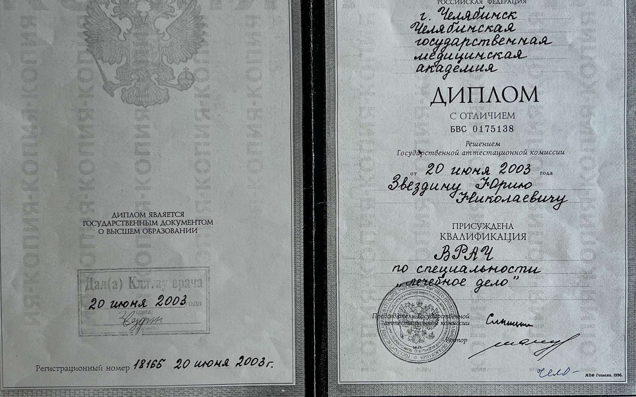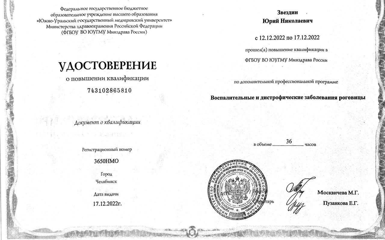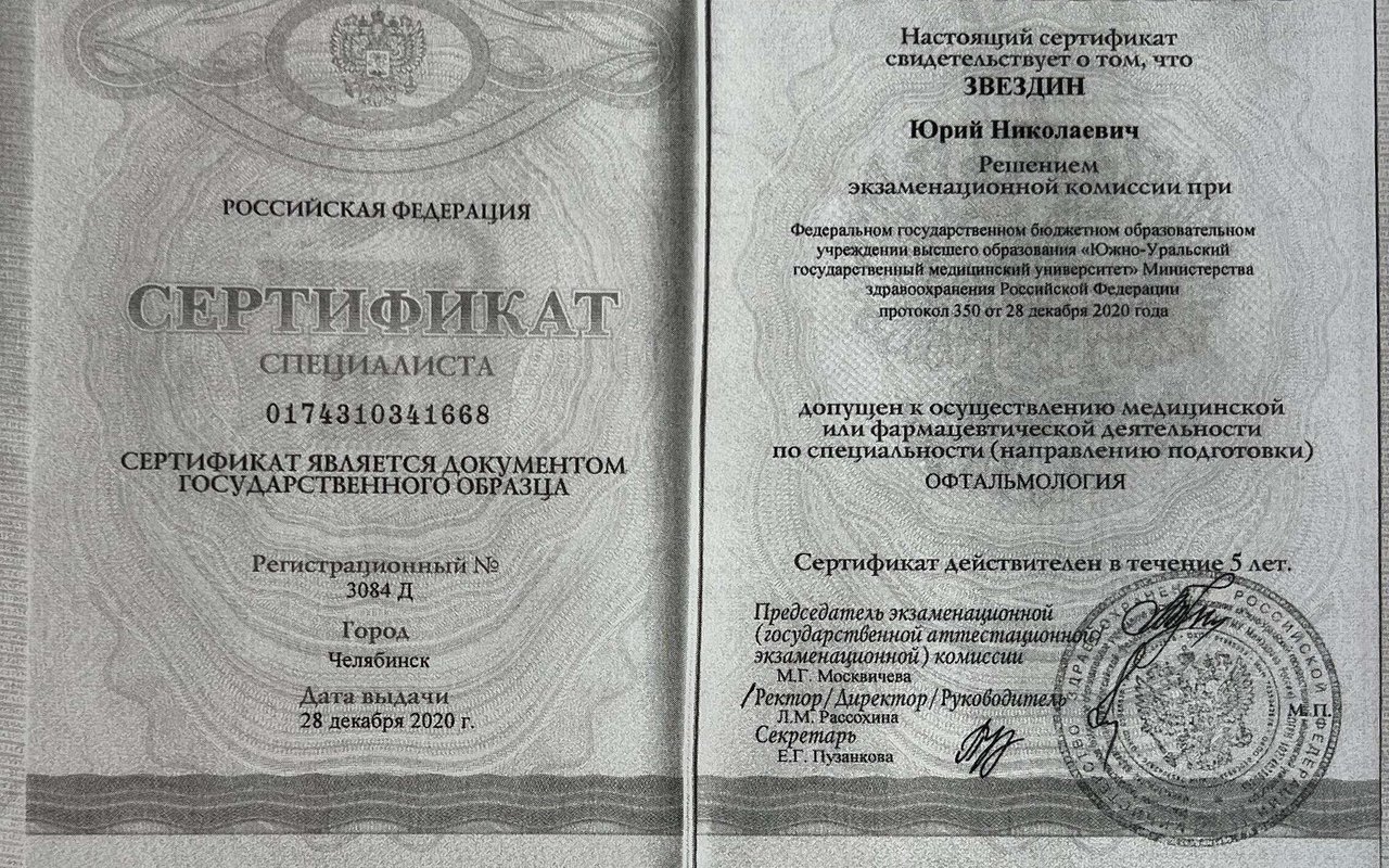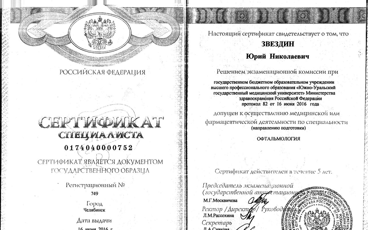 - Есть ли у Звездина Юрия Николаевича необходимые сертификаты?