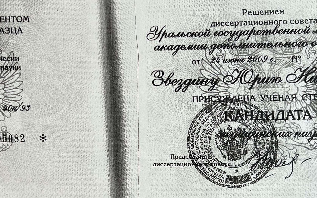 - Получил ли Звездин Юрий Николаевич профессиональный титул?