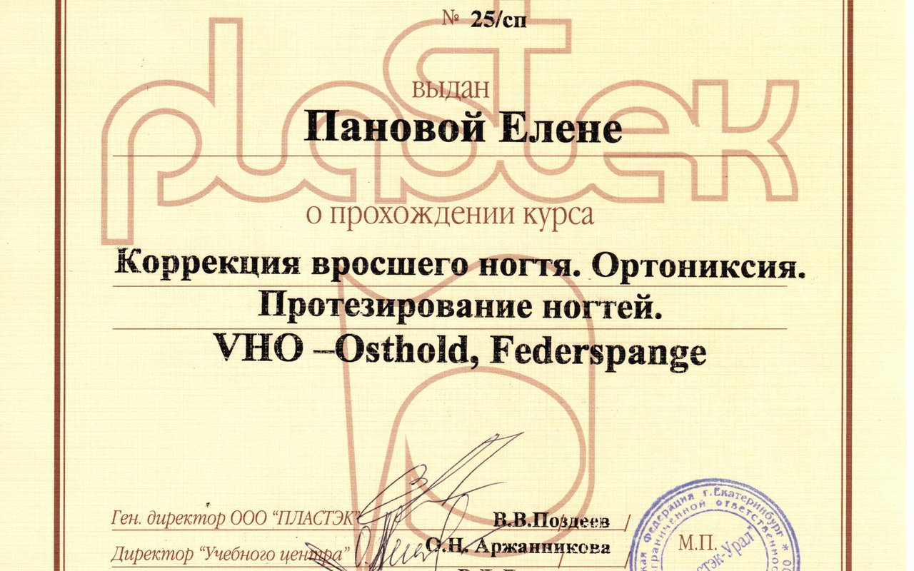 Кроме того, Елена Олеговна с 2009 года является руководителем "Первого подологического центра" и проводит консультации, как клиентов, так и мастеров по болезням ногтей, коррекции вросшего ногтя, восстановление ногтей после травм. Панова Елена Олеговна сделает все возможное, чтобы вы остались довольны посещением Первого подологического центра.... Показать еще