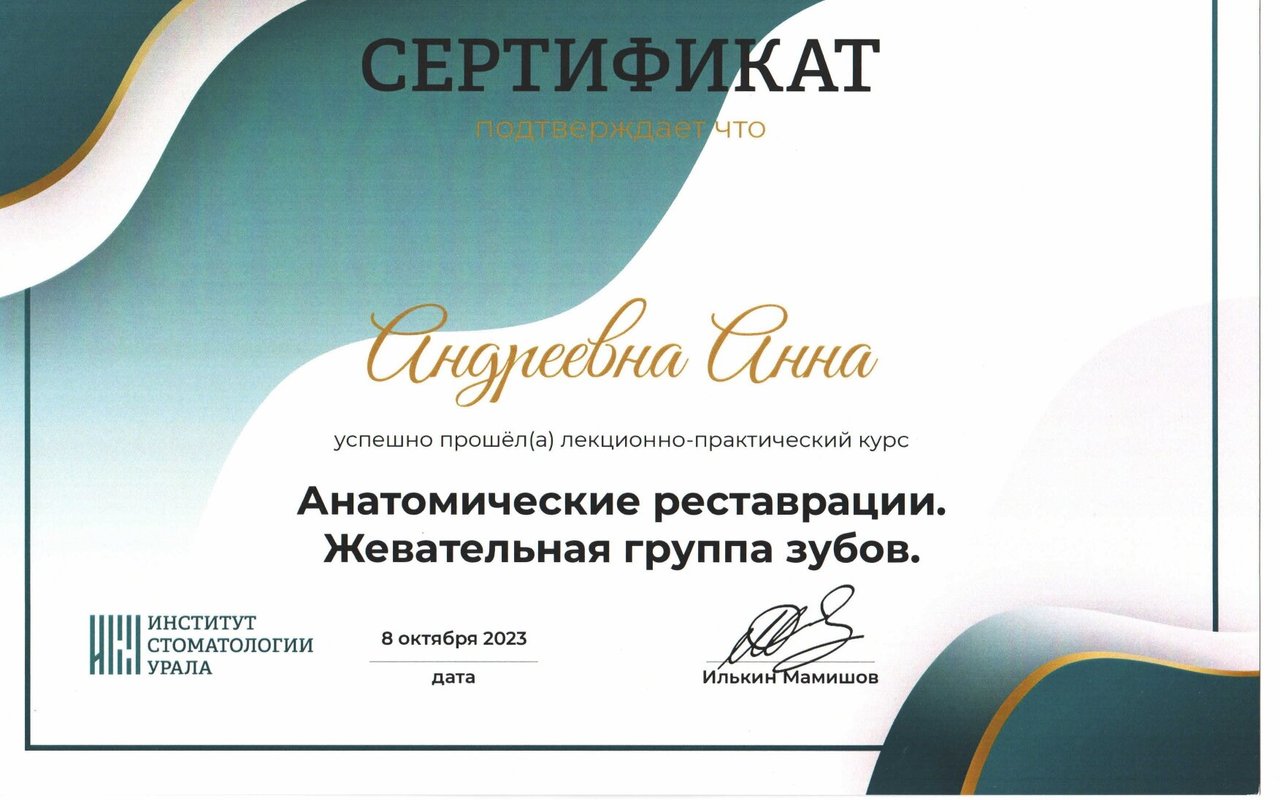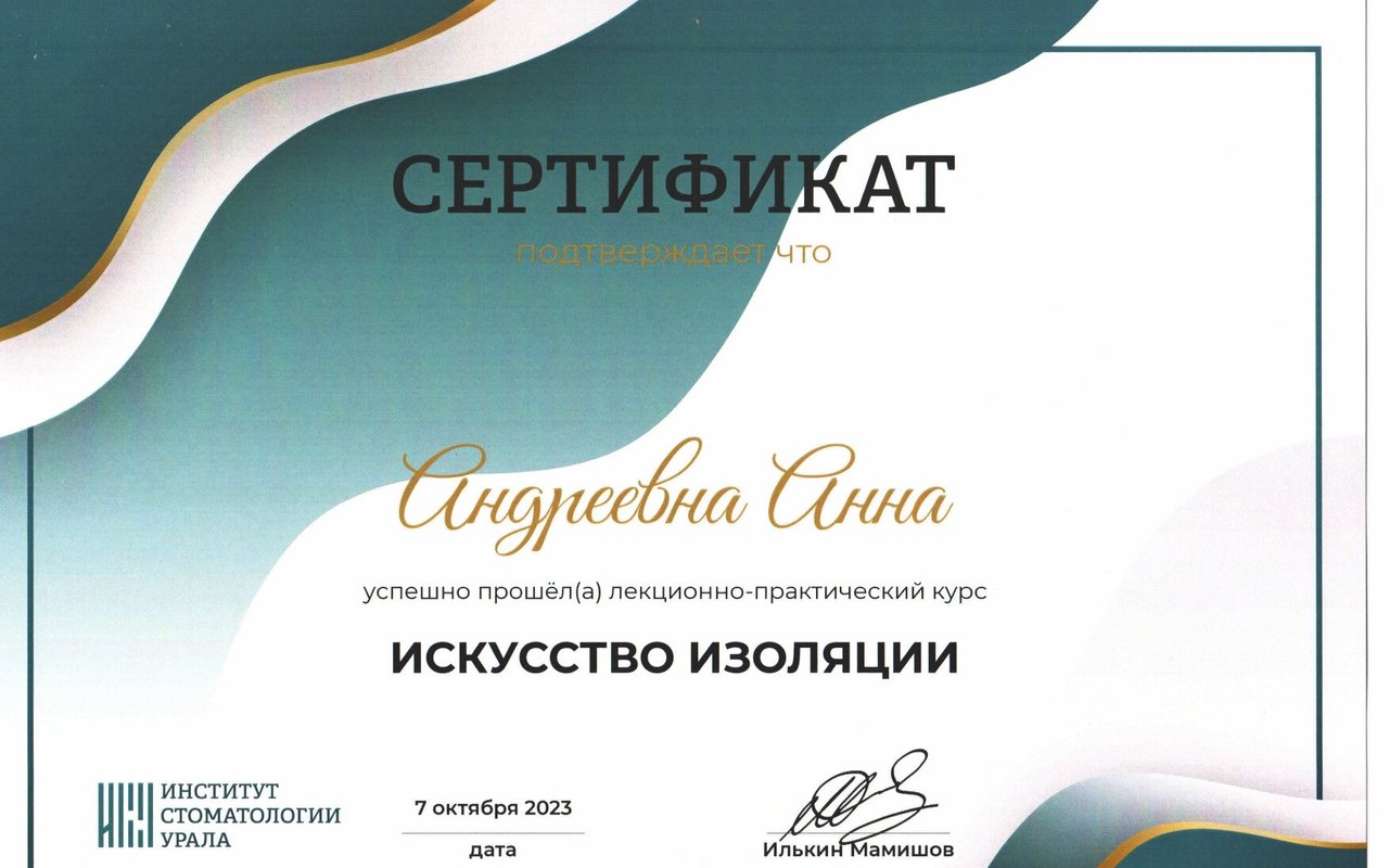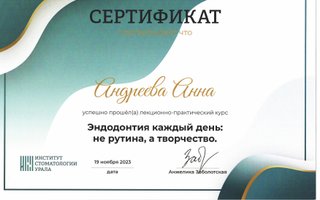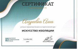 Анна Алексеевна Андреева — внимательный и профессиональный стоматолог-терапевт, которая заботится о пациентах. За два года работы она успешно выполняет различные процедуры, такие как лечение кариеса, чистка и отбеливание, всегда тщательно и аккуратно. Пациенты ценят её доброжелательное отношение и качество обслуживания.