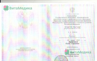 2012 - окончила Уральскую Государственную медицинскую академия по специальности "Лечебное дело". 2013 - интернатура по специальности "Акушерство и гинекология", УГМА