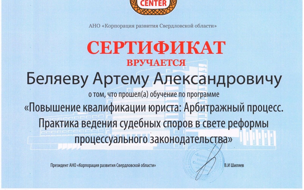 - Есть ли у Беляева Артема Александровича необходимые сертификаты?
