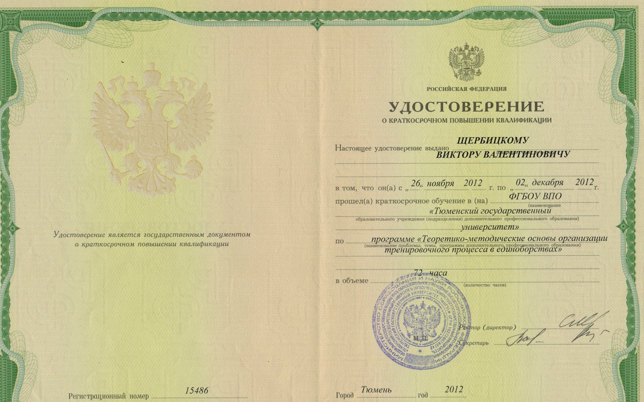 1999–2004 — Тюменский Государственный университет "Теоретико-методические основы организации тренировочного процесса в единоборствах"