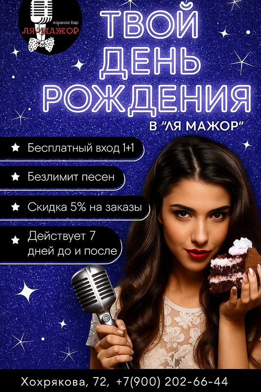 ✅ Бесплатный вход по системе 1+1 (для именинника и еще одного человека)