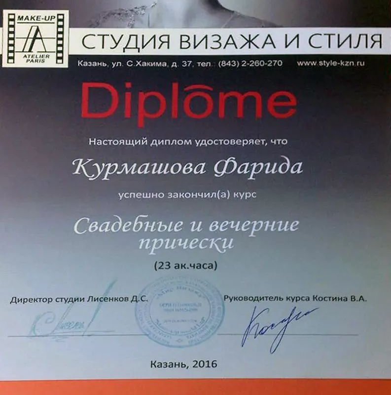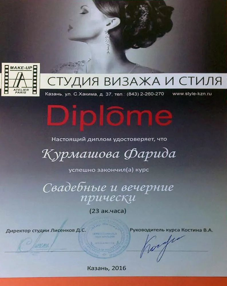 2016 — Школа визажа и стиля Make-up Atelier Paris, повышение квалификации по визажу