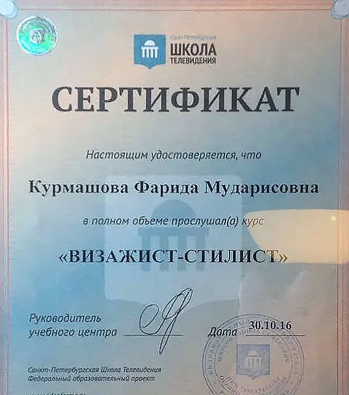 2016 — Санкт-Петербургская школа телевидения, визажист-стилист