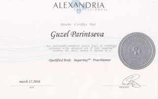 2016 — Студия шугаринга Лии Рустемовой, мастер по шугарингу