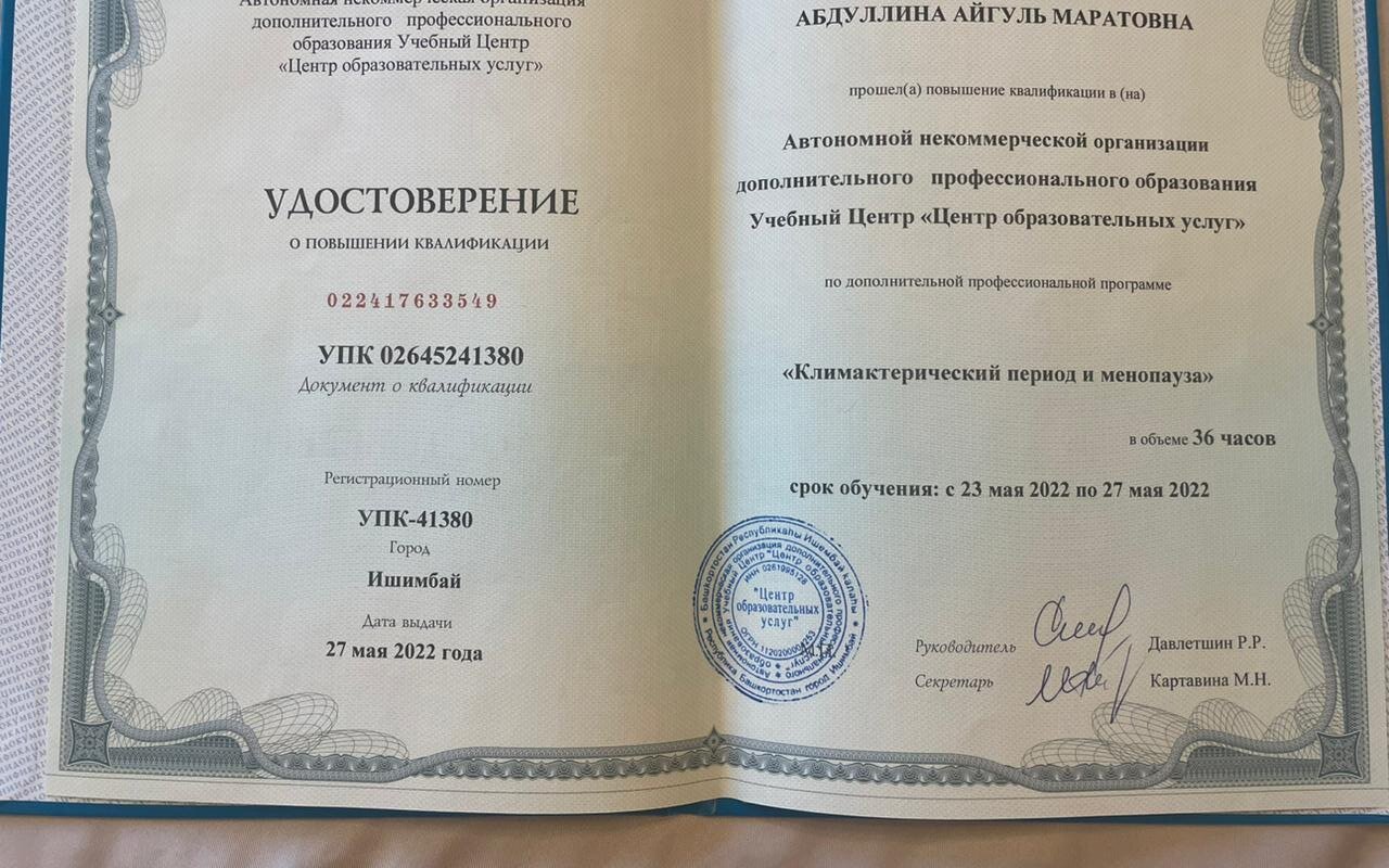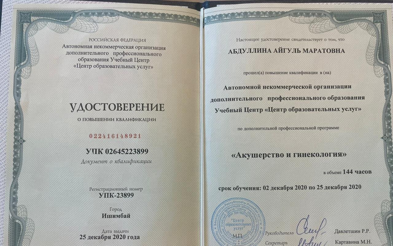 Абдуллина Айгуль Маратовна является акушером-гинекологом.