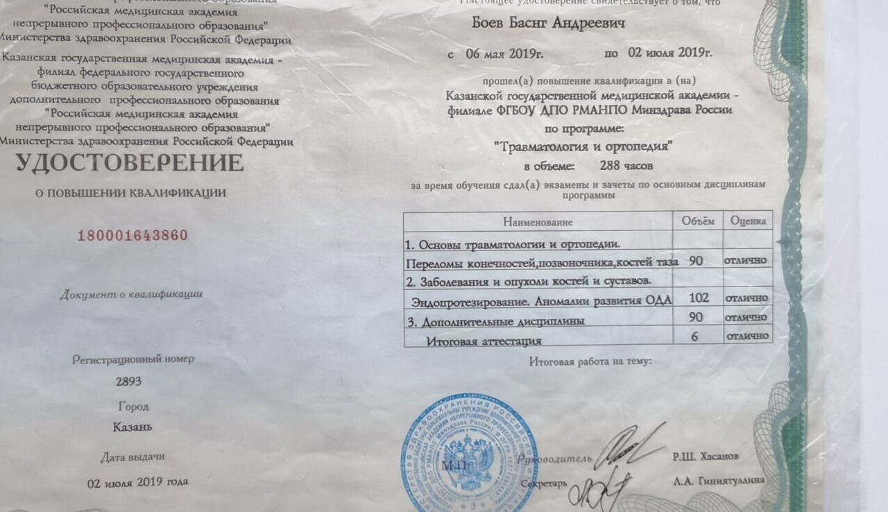 2014 — Казанский государственный медицинский университет (травматология и ортопедия)