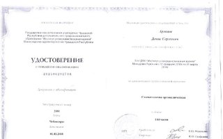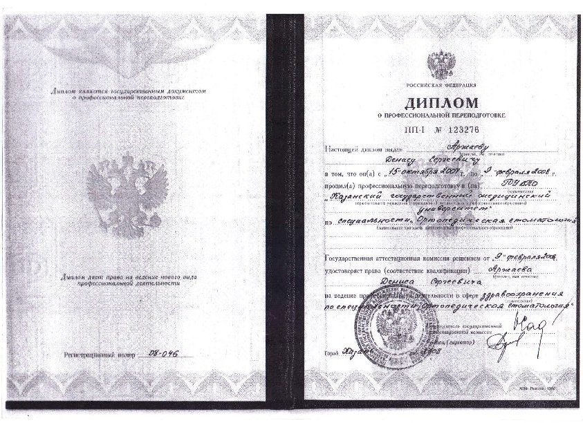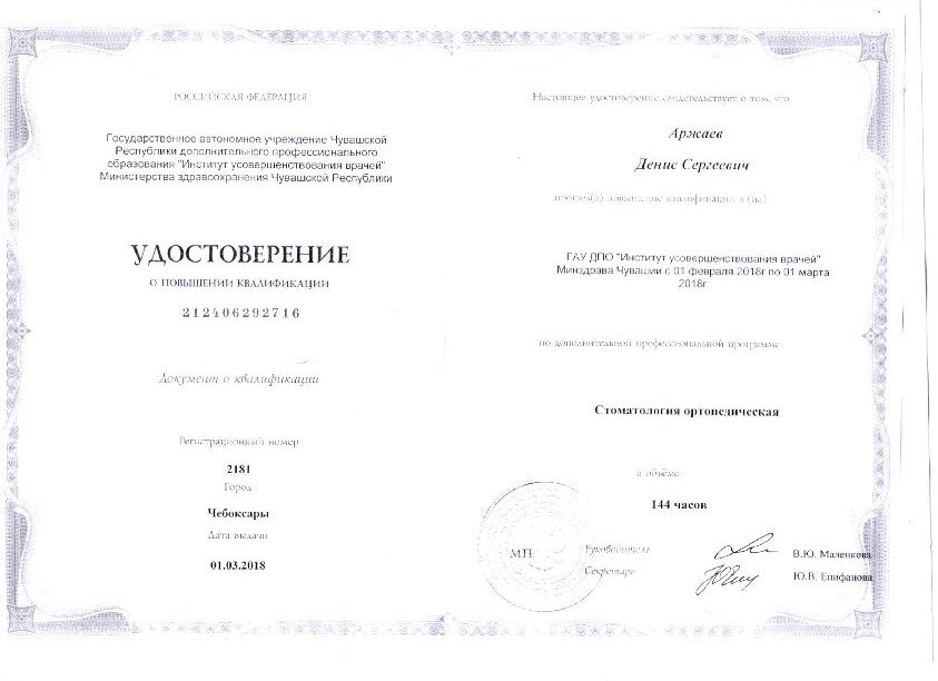 Аржаев Денис Сергеевич является стоматологом-ортопедом, а также работает в сфере имплантологии и стоматологической хирургии. Вы можете обратиться к Денису Аржаеву, если вам необходимо восстановить утраченный зуб или если какой-либо из зубов находится в таком состоянии, что обычная пломба ему не поможет. Зубы перед протезированием обязательно должны быть санированы, поэтому перед визитом к ортопеду рекомендуется посетить стоматолога-терапевта.... Показать еще