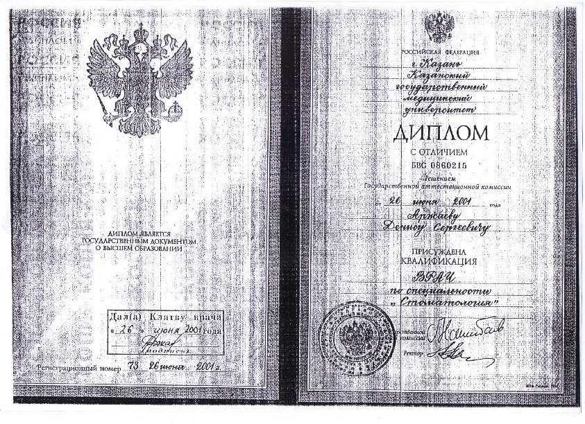 2001 — Казанский государственный медицинский университет (стоматология)