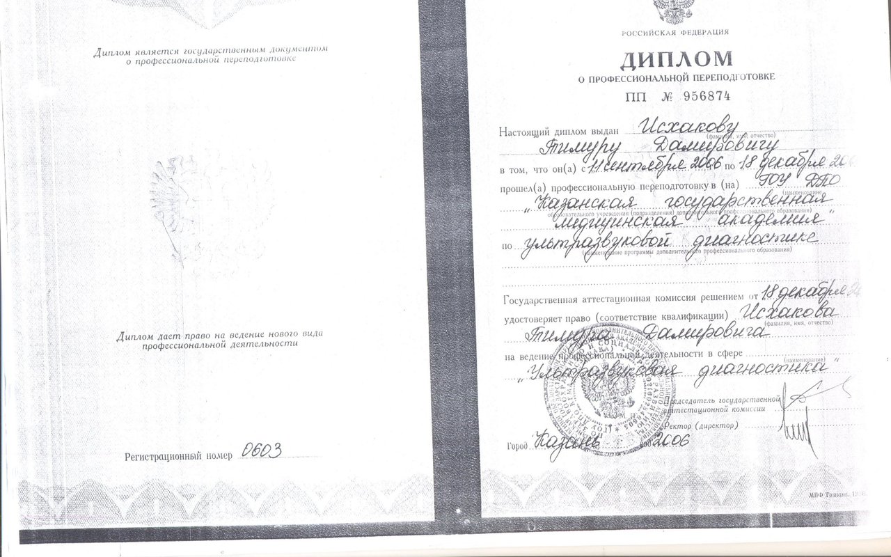 2006 — Казанская государственная медицинская академия (ультразвуковая диагностика)