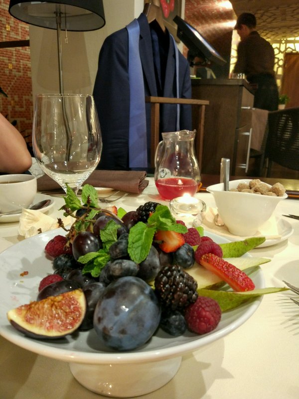 Заказали чай — принесли быстро, но до конца ужина он совершенно остыл! Можно было, наверное, поставить его,хотя-бы, на свечку, чтобы подогревался. То же самое касается шашлыка — заказали 2 вида, пока доехали один, угли под другим совсем погасил (у них подача такая — маленькие шампура лежат на кастрюльке с тлеющим углем). Доехали холодное мясо. Саксофонист играл душевно, но куда-то постоянно уходил (быстро уставал, наверное). В общем, ещё раз не пойдём.