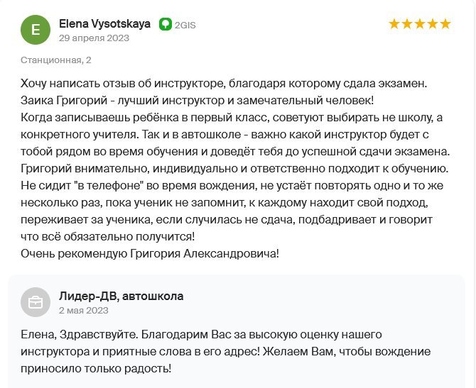 Отзывы о автоинструкторе Григории Александровиче Заике