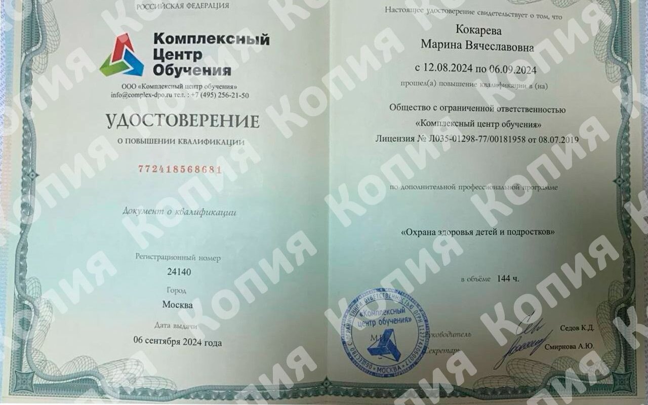 - Могу ли я ознакомиться с сертификатами Кокаревой Марины Вячеславовны?